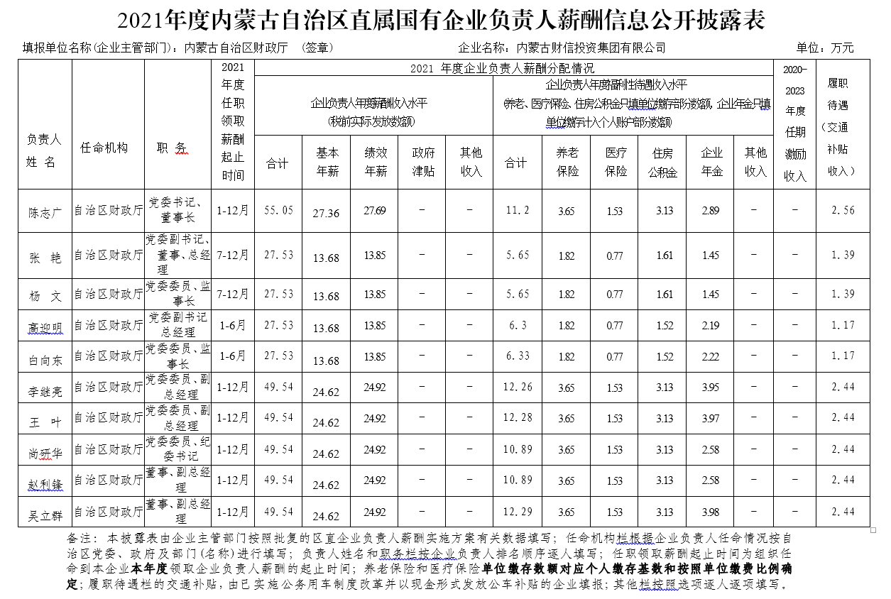 2021年度內(nèi)蒙古自治區(qū)直屬國(guó)有企業(yè)負(fù)責(zé)人薪酬信息公開披露表